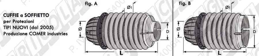 51.571-421 | CUFFIA Soffietto L=267 per Protezione Tubo Ø 66,5 (Senza Ghiera) Attacco D=Ø 160; Ø1=172 (fig. B) (details) | Prod. Comer Ind. | T40 (Dal 2005) V40 | |