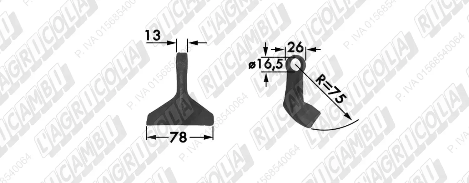 HAMMER Attacco ø16,5 x 13,0 - Raggio 75,0 (PIANA) |