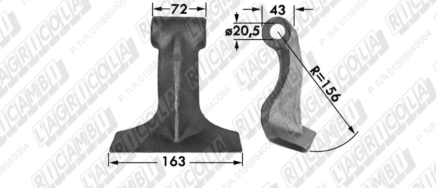 HAMMER Attacco ø20,5 x 72,0 - Raggio 156,0 (PIANA) |