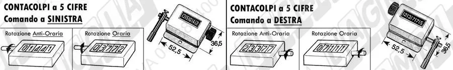 | NR | 2 | 60.051 | CONTABALLE-CONTACOLPI a 5 Cifre, Comando a DESTRA, Rotazione Anti-Oraria (details) | Use on Ama | per Presse | |||