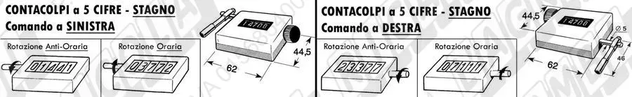 | NR | 2 | 60.062 | CONTABALLE-CONTACOLPI a 5 Cifre, Comando a SINISTRA, Rotazione Anti-Oraria TENUTA STAGNA (details) | Use on Fort | per Rotopressa | |||