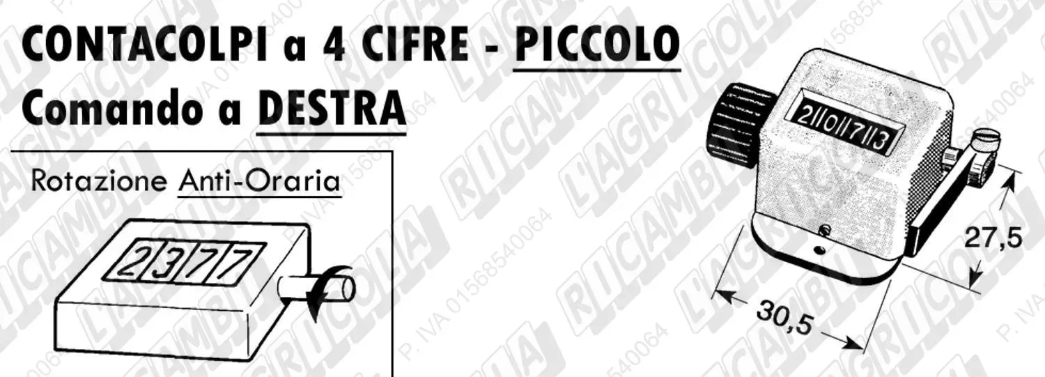 | NR | 2 | 60.050 | CONTABALLE-CONTACOLPI a 5 Cifre, Comando a SINISTRA, Rotazione Oraria (details) | Use on Carraro | per Rotopresse per Seminatrici | |||