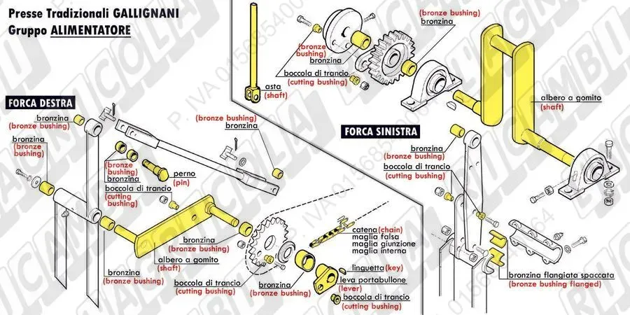 BRONZE BUSHING D=40,0-d=35,0-L=40,0 in Bronzo Autolubr. (details) per Albero Gomito Sx Presse, Mod. 6100, 5690 (dettagli) | Orig. Gallignani | 88.80.016 |