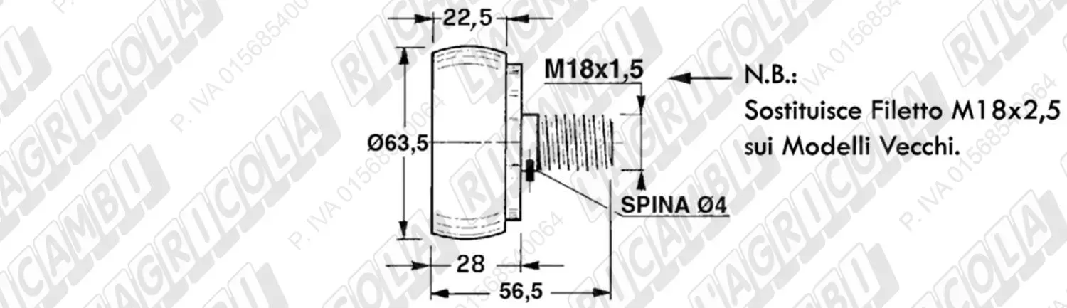 RULLO PISTONE M18 x 1,5 - Diam. 63,5 x 56,5 (details) Mod.1500, 1600, 2600, 1690, 2690, 3690, 5690, 5690/E (dettagli) | Use on Gallignani | 00.70.501=00.70.506 |