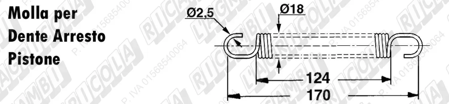 MOLLA a TRAZIONE L=170 - ø=18 - Filo ø 2,5 (details) per Arresto Pistone - Mod. 1690, 2690, 2690E, 3690, 5690, 5690E (dettagli) | Use on Gallignani | 88.76.057 | |