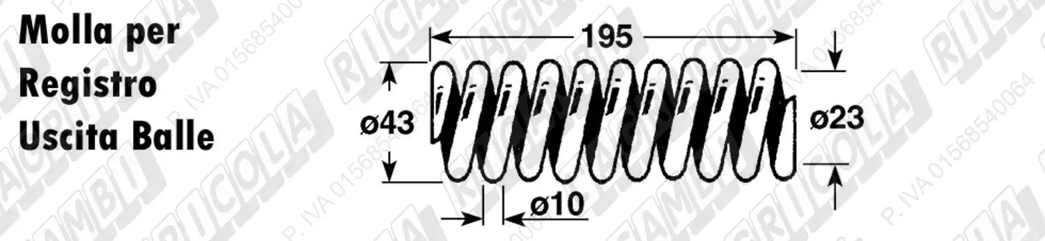 MOLLA a COMPRESSIONE L=195 - ø=43 - Filo ø 10 (details) per Registro Regolazione Balle (dettagli) | Use on Gallignani | 88.76.108 |