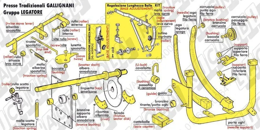 BALE ADJUSTEMENT (CREMAGLIERA+RULLO+MORSETTO) (details) (dettagli) | Use on Gallignani | ||