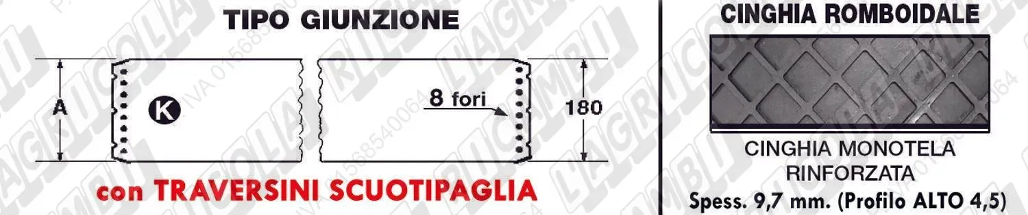 CINGHIA ROMBOIDALE H=180 - L=2320 - 8 Fori (details) (dettagli) | Use on .Costrutt. Vari | Gall.: |