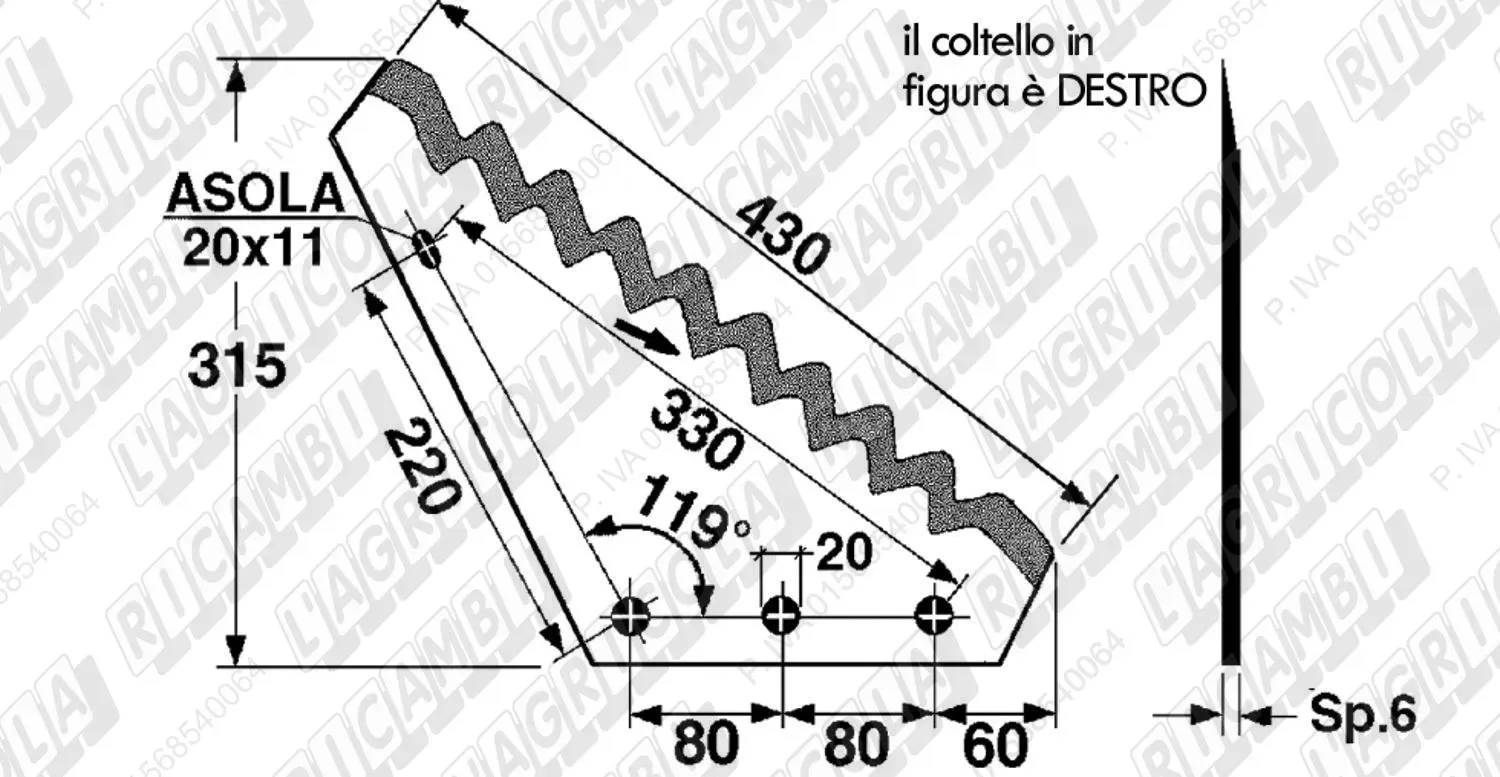 KNIFE DIRITTO 119° - 1 Asola
