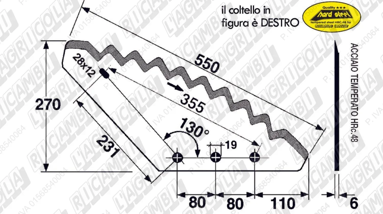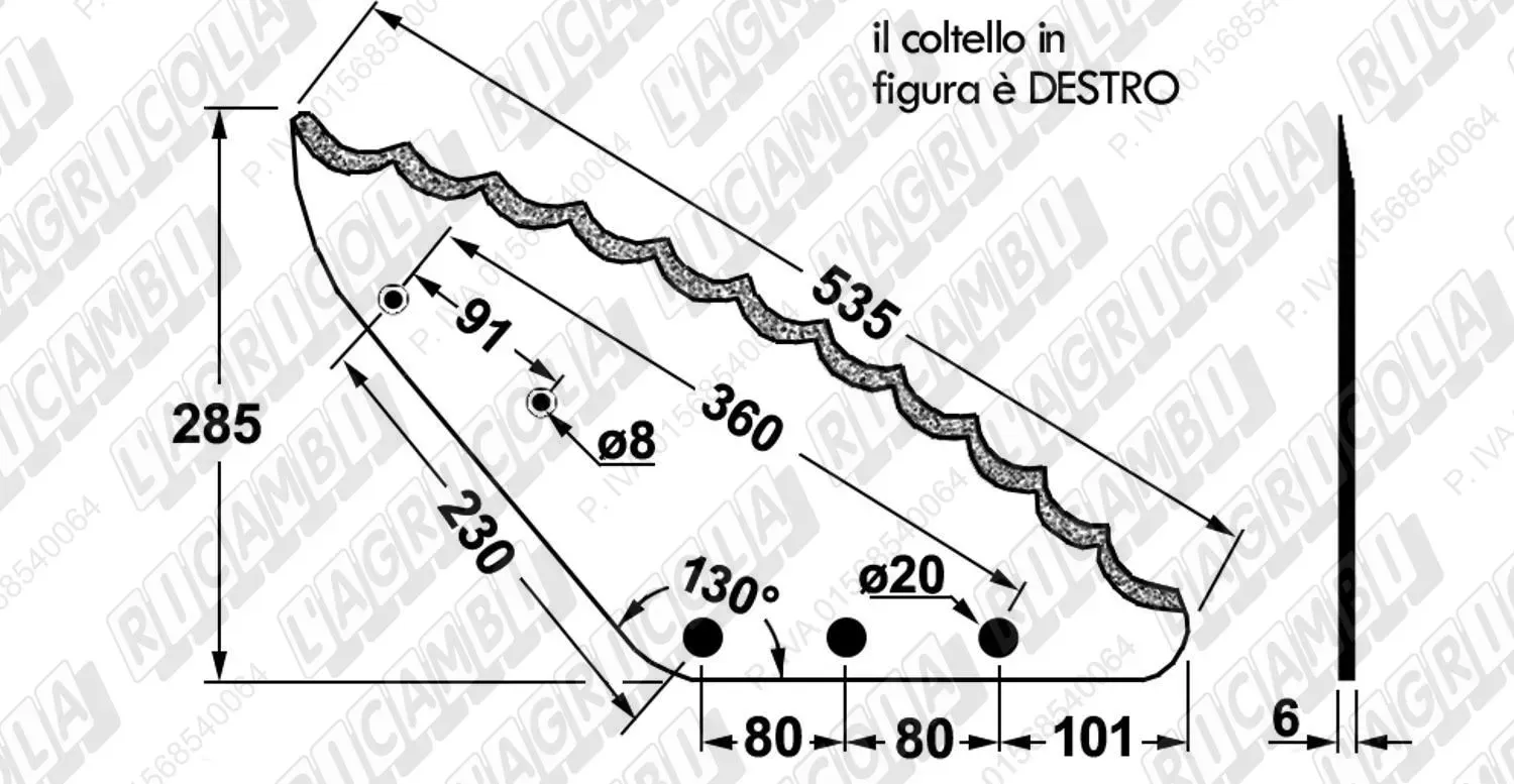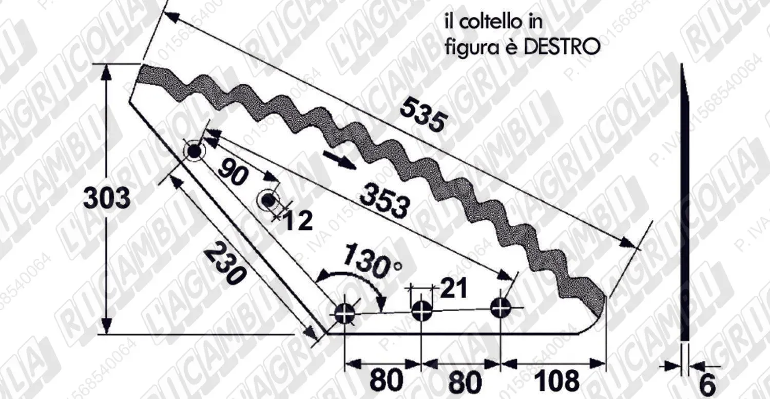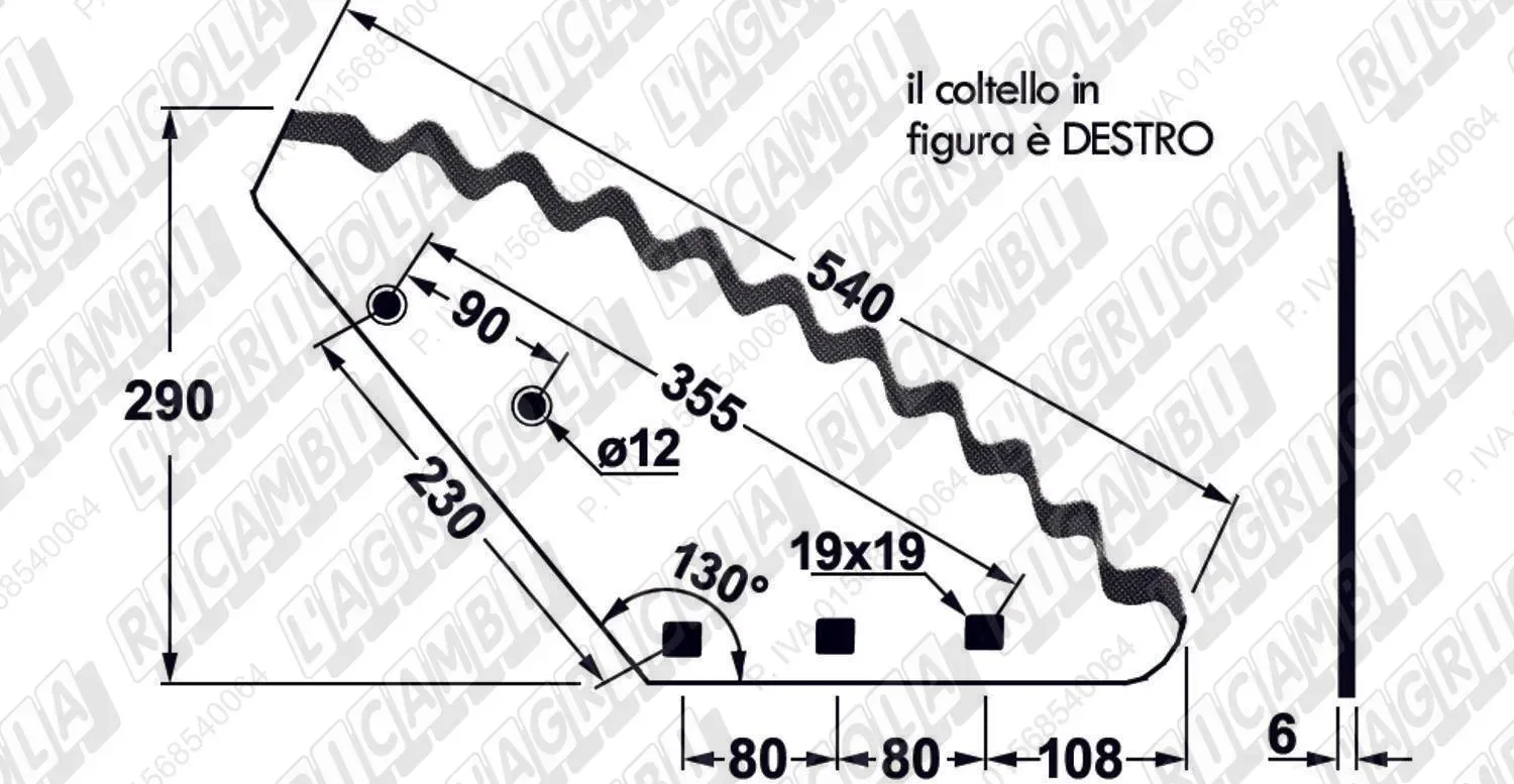 KNIFE CURVO 130° - Fori Quadri DESTRO