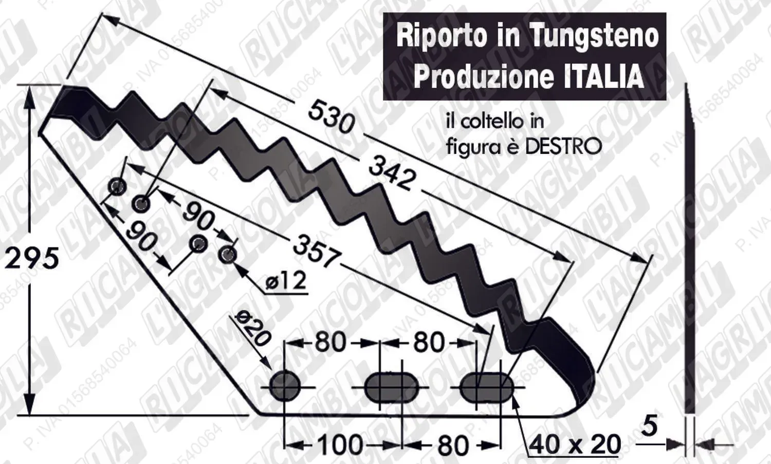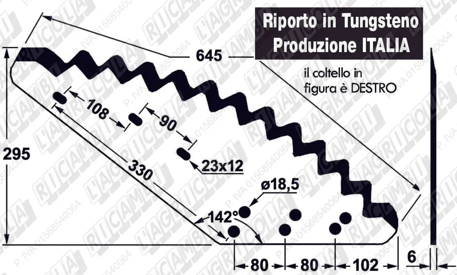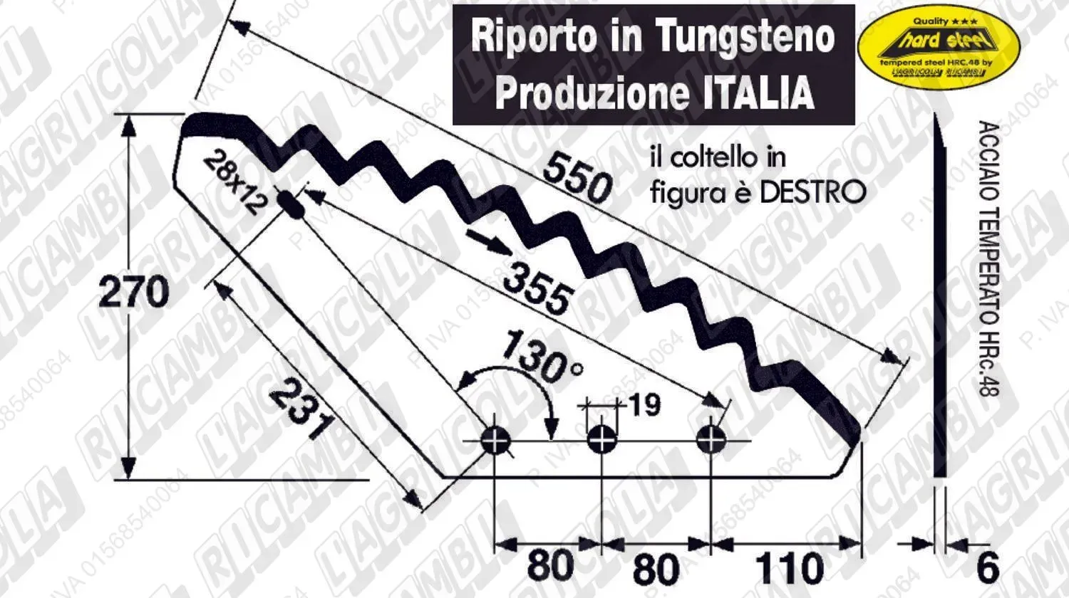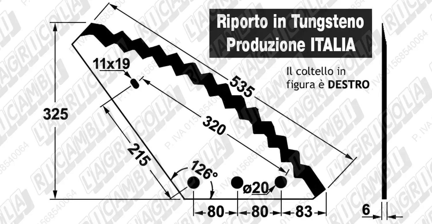 KNIFE CURVO 126° - 1 Asola DESTRO con Riporto al TUNGSTENO