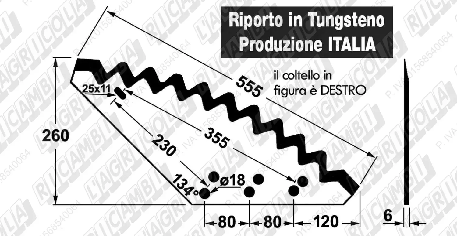 KNIFE CURVO 134° - 1 Asola con Riporto al TUNGSTENO
