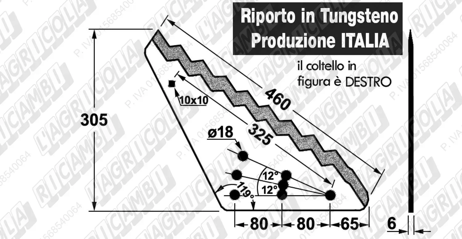 KNIFE DIRITTO 119° - 1 Foro Quadro + 7 fori ø18 con Riporto al TUNGSTENO
