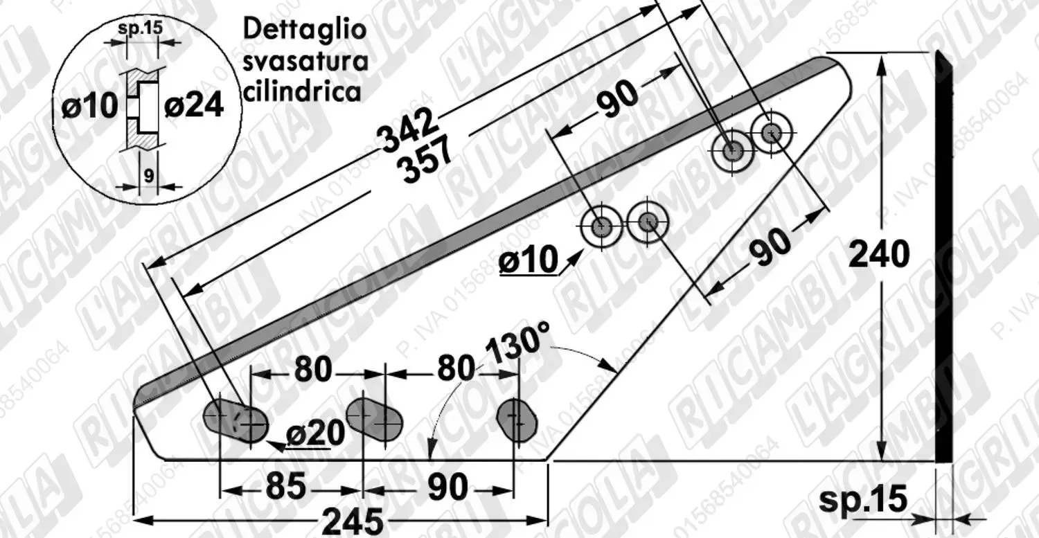 DIRITTO 119° - 1 Foro Quadro + 7 fori ø18