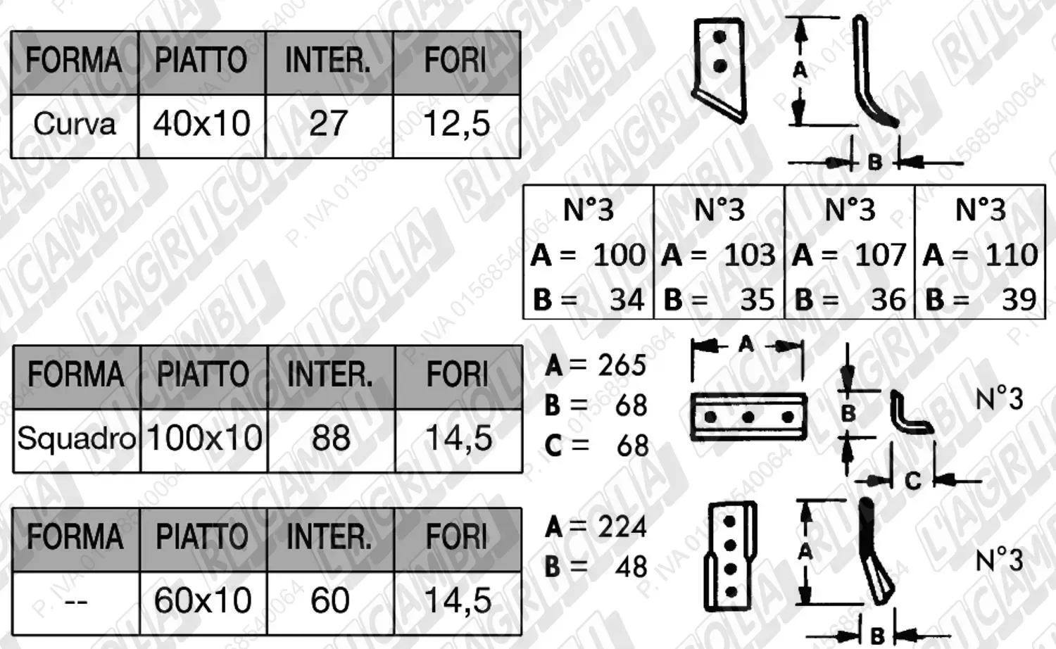 (n°12 Zappette + n°3 Coltelli Angolari + n°3 Coltelli Laterali)