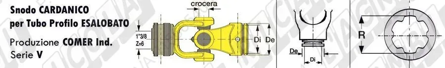 51.252 | SNODO CARDANICO D.i = 40,0 - D.e = 47,0 - R= 36,2 - Croc. 23,8 x 61,3 (dettagli) | Prod. Comer Ind. | Interno : V20 | 121.022.660.00 |