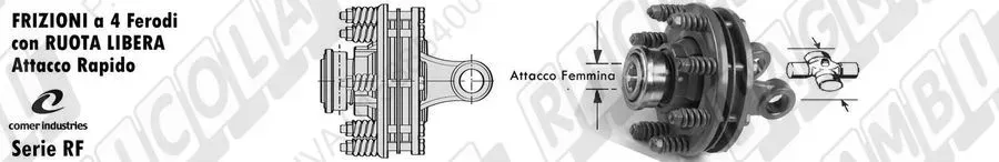 | NR | 1 | 54.272 | FRIZIONE a FERODI + RUOTA LIBERA RF6 - Tipo 8 (Croc. 35x106,5) a 4 Ferodi (152,5x102x3) Attacco Femmina 1'3/8 Z=6 Coppia Funzionamento 1400 Nm (dettagli) | Prod. Comer Ind. | RF6 - Tipo 8 | 146.384.001 | ||