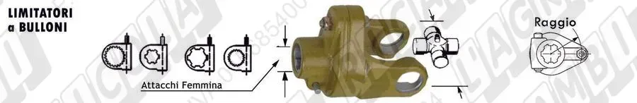 54.261-A | LIMITATORE a BULLONE Serie 10 (Cr.41x118)-Att.Femm. 1'3/4 Z=20 Puls.Doppio Bullone M14x75 R=80 - Raggio=49 Potenze fino a 230 Cv. - Momento Torcente 4500 Nm (dettagli) | Adatt. Bondioli & Pavesi | | |
