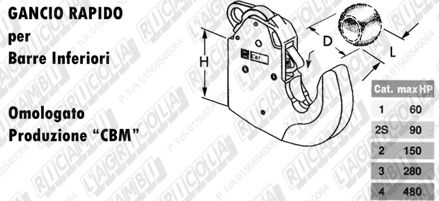 69.808 | GANCIO RAPIDO Cat.3^ (3) H=114 (ø 64x45) MAX HP= 280 (dettagli)