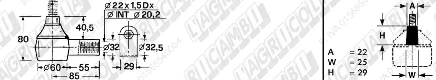 Testina Idrog. FEMMINA - Cono 22,00 - Fil. 22 x 1,3 Dx - L= 85 (dettagli) | Imp. su David Brown | K950327 |