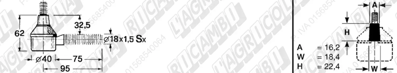 Testina MASCHIO - Cono 16,20 - Fil. 18 x 1,5 Sx - L= 95 (dettagli) | Imp. su John Deere | AZ 10850 |