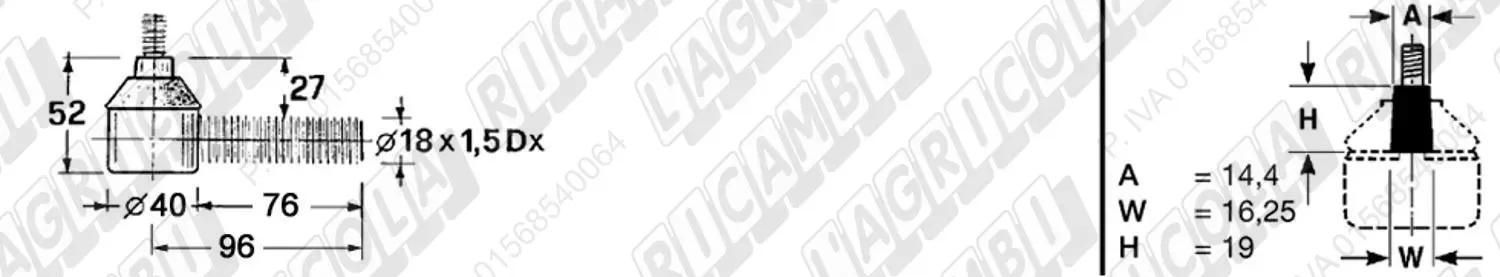 Testina MASCHIO - Cono 14,40 - Fil. 18 x 1,5 Dx - L= 96 (dettagli) | Imp. su John Deere | AZ 10851 | |