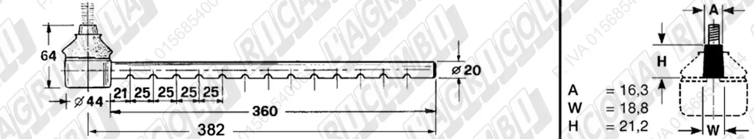 Tirante Registr. MASCHIO - Cono 16,20 - ø20,0 - L=382 (Sotto) (dettagli) | Imp. su John Deere | AT 27134 AT 31325 |