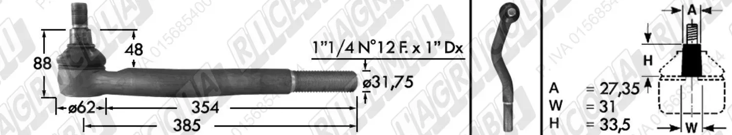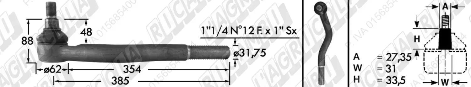 Testina MASCHIO - Cono 27,35 - Fil. ø31,75 (1''1/4x12) Sx - L=385 (dettagli) | Imp. su John Deere | RE173541 RE61402 |