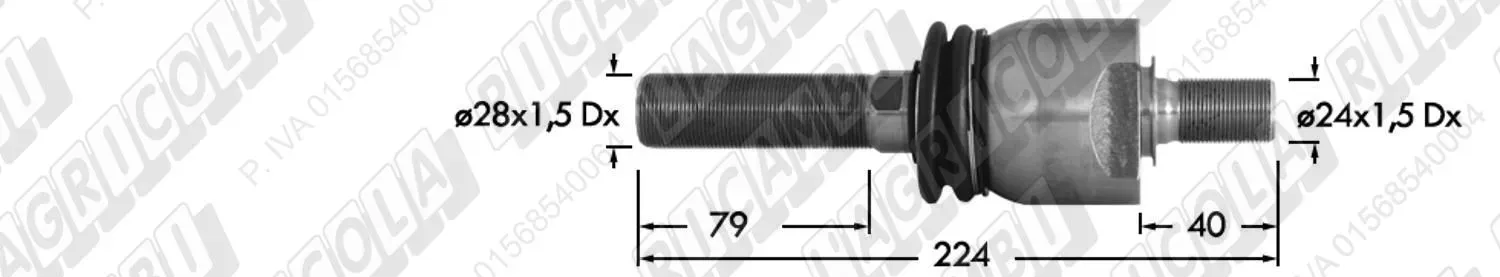 Snodo Assiale (Perno Fil. 28 x 1,5 Dx) (Snodo 24x1,5 Dx) - L=224 (dettagli) | Imp. su John Deere | AL110918 AL177977 AL68253 AL168703 |