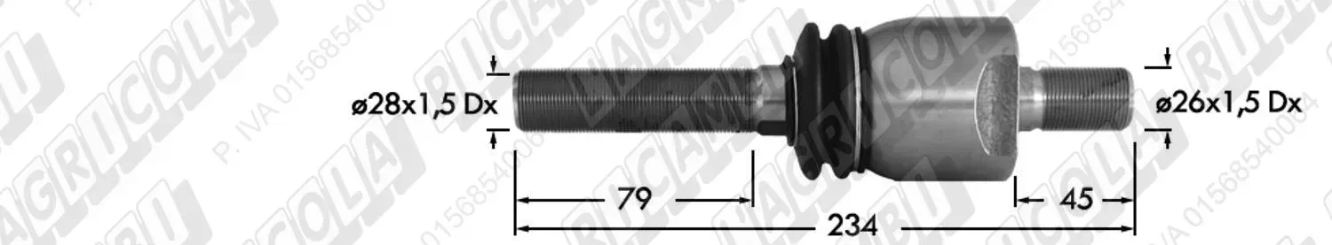 Snodo Assiale (Perno Fil. 28 x 1,5 Dx) (Snodo 26x1,5 Dx) - L=234 (dettagli) | Imp. su John Deere | AL160543 AL160202 AL116020 |