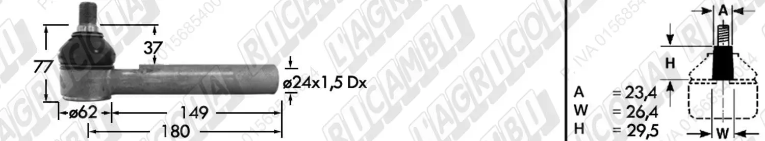 Tirante Idrog. Centr. FEMM. - Cono 23,40 - Fil. ø24x1,5 Dx - L=180 (dettagli) | Imp. su John Deere | AL161301 AL161338 |
