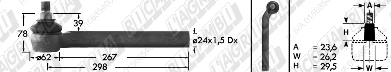 Tirante Idrog. Centr. FEMM. - Cono 23,60 - Fil. ø24x1,5 Dx - L=298 - Sx Piega (dettagli) | Imp. su John Deere | AL58014 AL168706 ZP0750125016 |