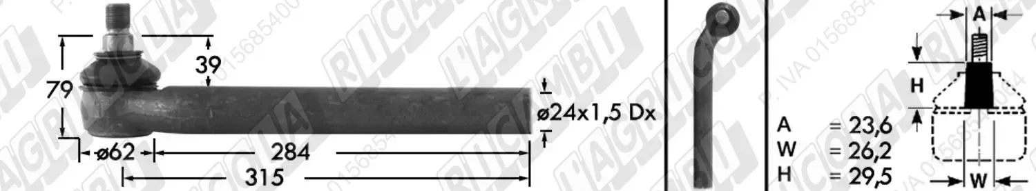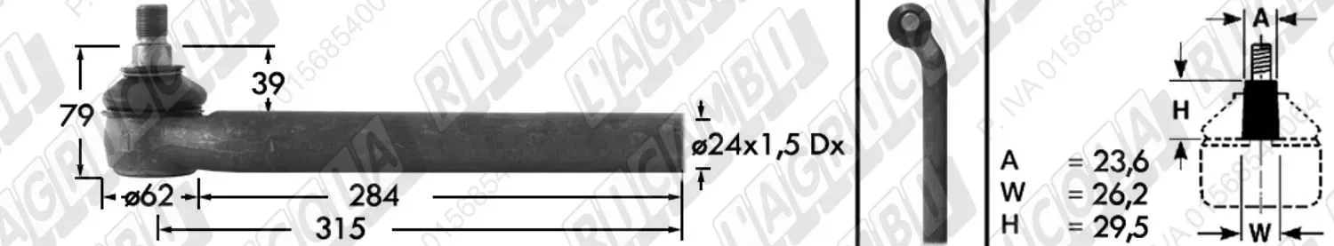 Tirante Idrog. Centr. FEMM. - Cono 23,40 - Fil. ø24x1,5 Dx - L=285 - Dx Piega (dettagli) | Imp. su John Deere | AL39315 | |