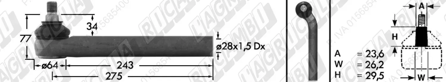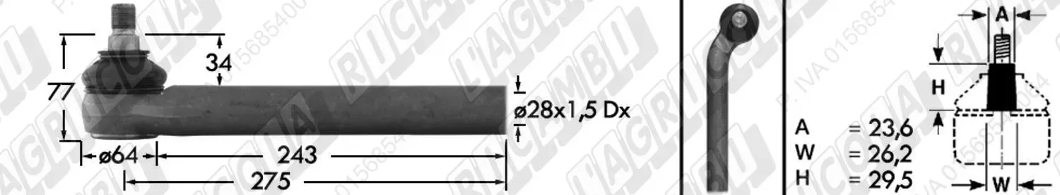 Tirante Idrog. Centr. FEMM. - Cono 23,60 - Fil. ø28x1,5 Dx - L=275 - Sx Piega (dettagli) | Imp. su John Deere | AL68255 | |