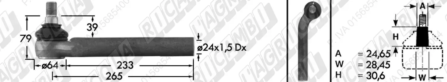 Tirante Registr. Assiale Cpl. Cono 24,65 - Fil. 22 x 1,5 Dx - L=265 - Dx Piega Composto da (81.584+81.370) (dettagli) | Imp. su John Deere | AL110346 AL116558 |