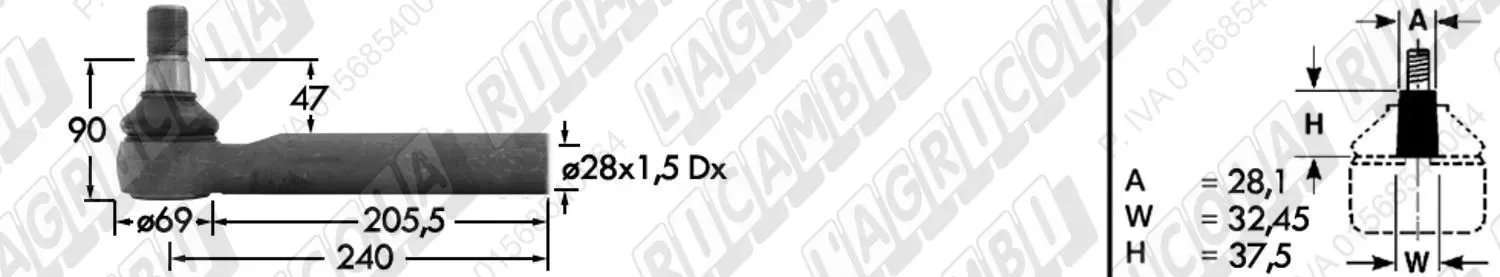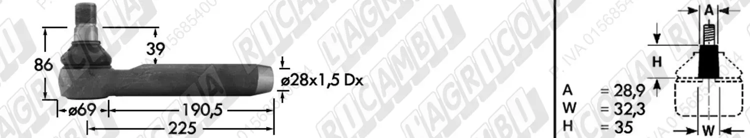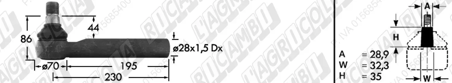 Tirante Idrog. Centr. FEMM. - Cono 28,90 - Fil. ø28x1,5 Dx - L=230 (dettagli) | Imp. su John Deere | AL160542 |