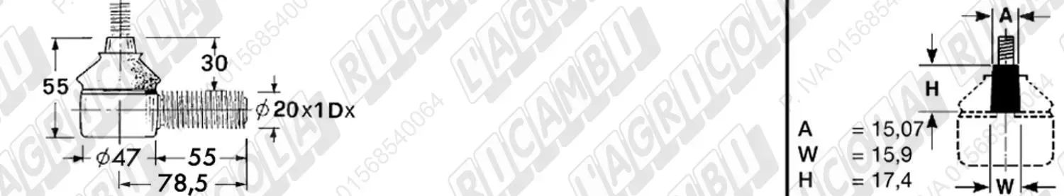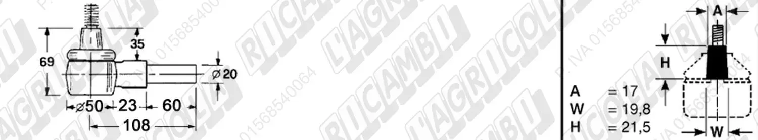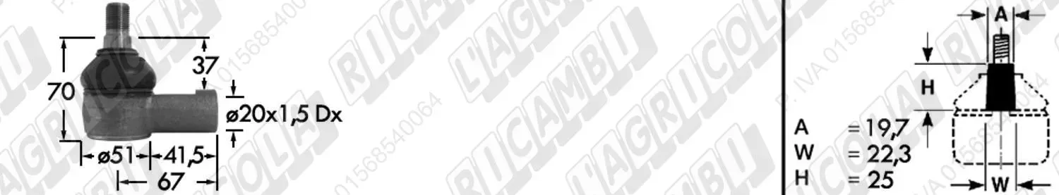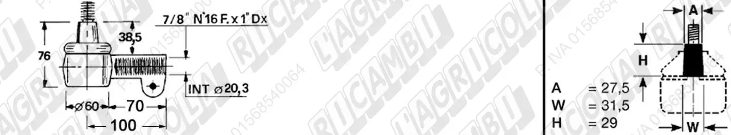 Testina FEMMINA - Att. ø20 - Fil. 20 x 1,5 Dx - L= 72 (dettagli)