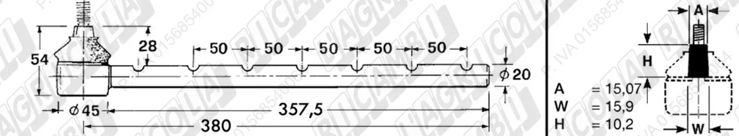 Tirante Registr. MASCHIO - Cono 15,07 - ø20,0 - L=380 (Sopra) (dettagli)