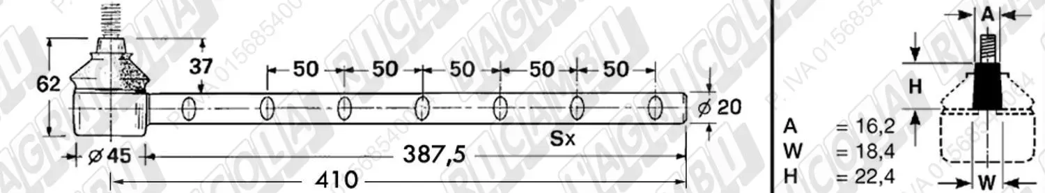 Tirante Registr. MASCHIO - Cono 16,20 - ø20,0 - L=410 (Sinistra) (dettagli)