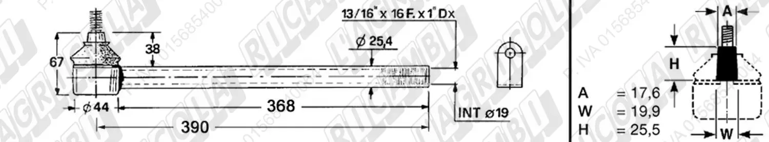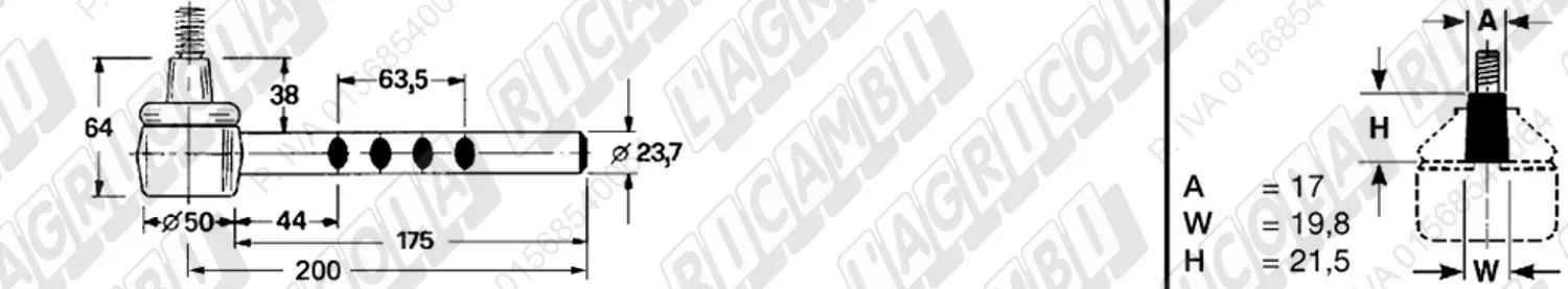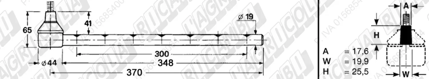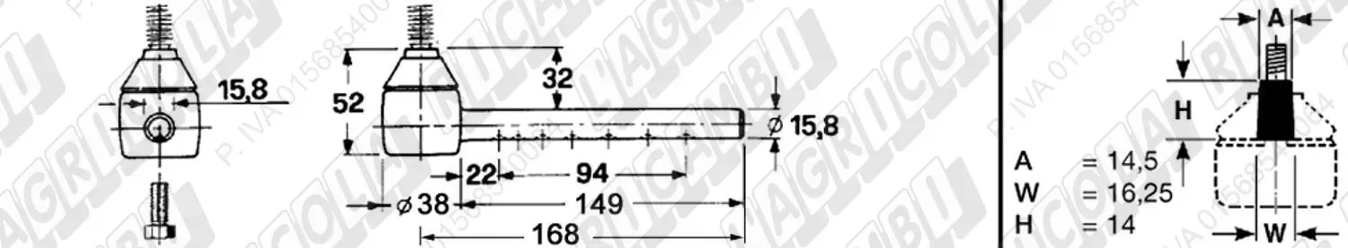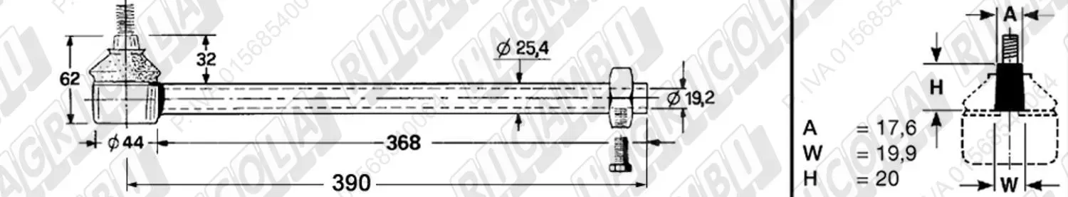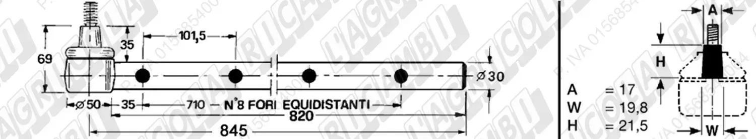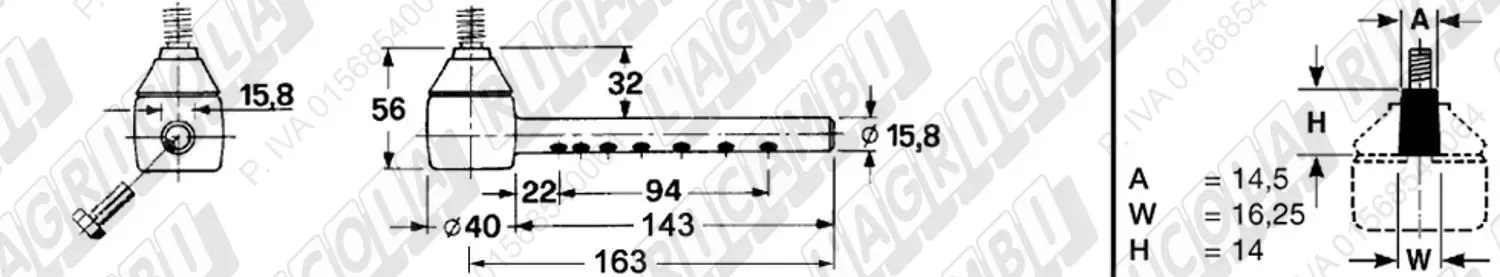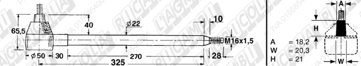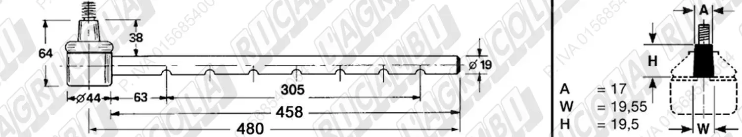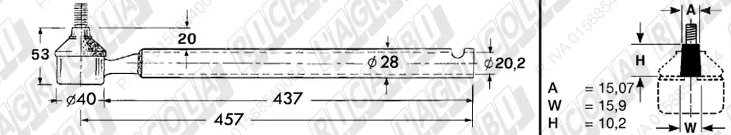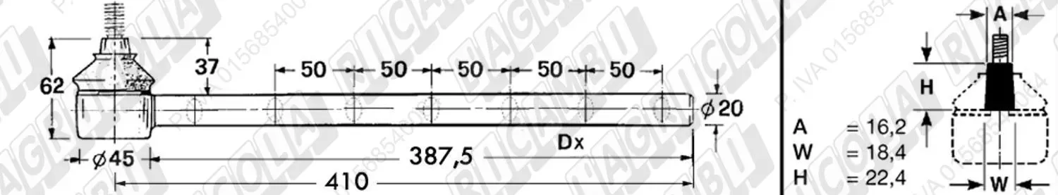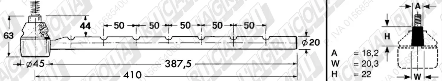 Tirante Registr. MASCHIO - Cono 16,20 - ø20,0 - L=410 (Destra) (dettagli)