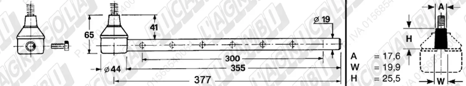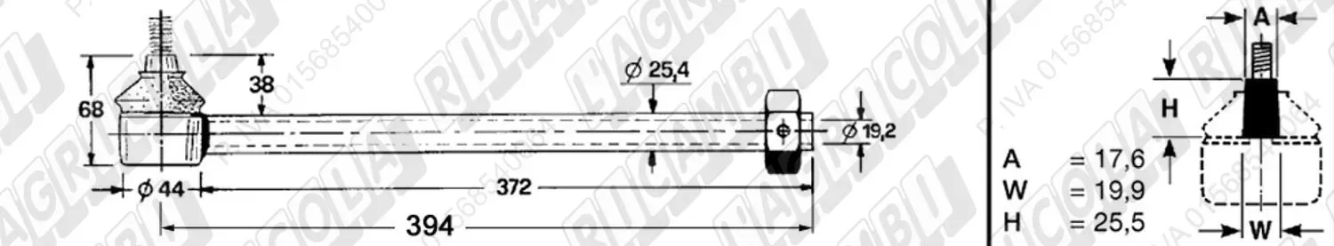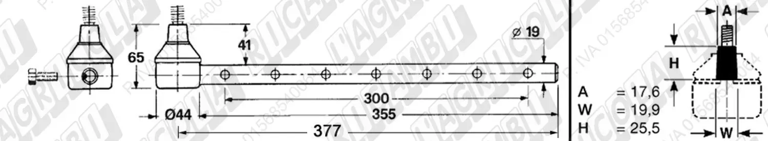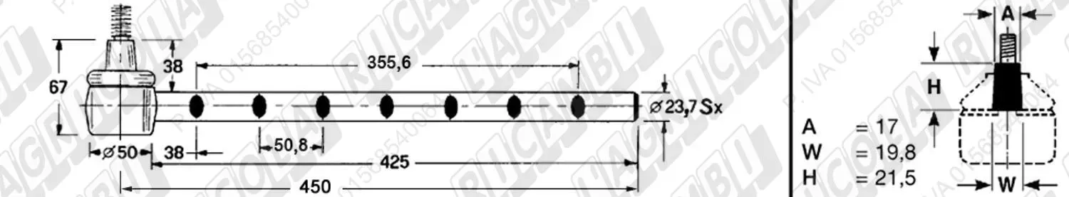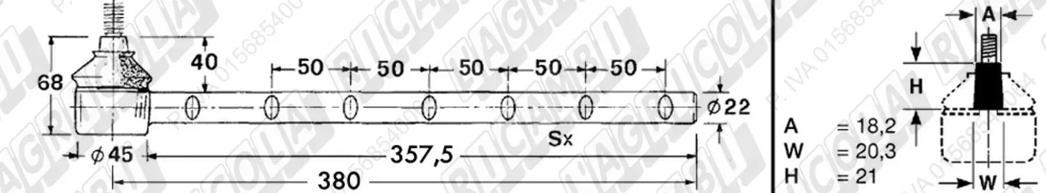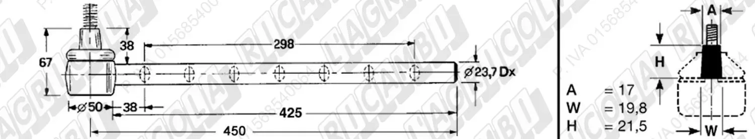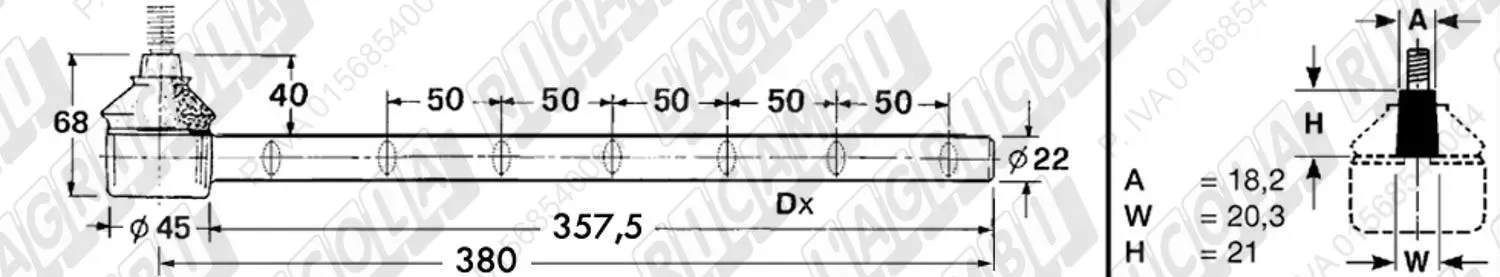 Tirante Registr. MASCHIO - Cono 18,20 - ø22,0 - L=380 (Destra) (dettagli)