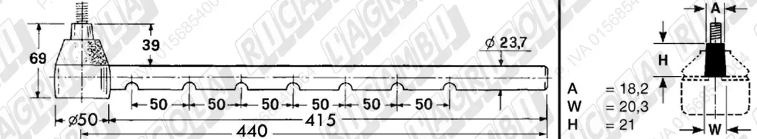 Tirante Registr. MASCHIO - Cono 18,20 - ø23,7 - L=440 (Sotto) (dettagli)