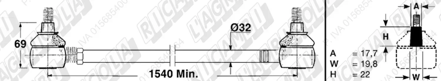 Tirante Registr. Barra Anteriore D.T. - Cono 17,70 - Inter. L= 1540 (dettagli)