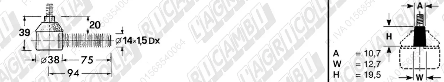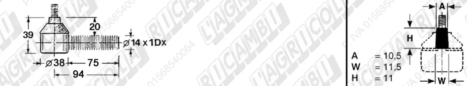 Testina MASCHIO - Cono 10,70 - Fil. 14 x 1,5 Dx - L= 94 (dettagli)