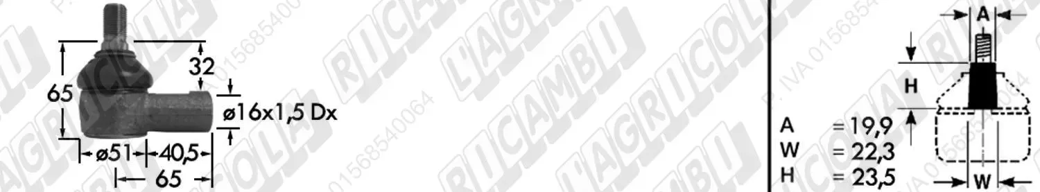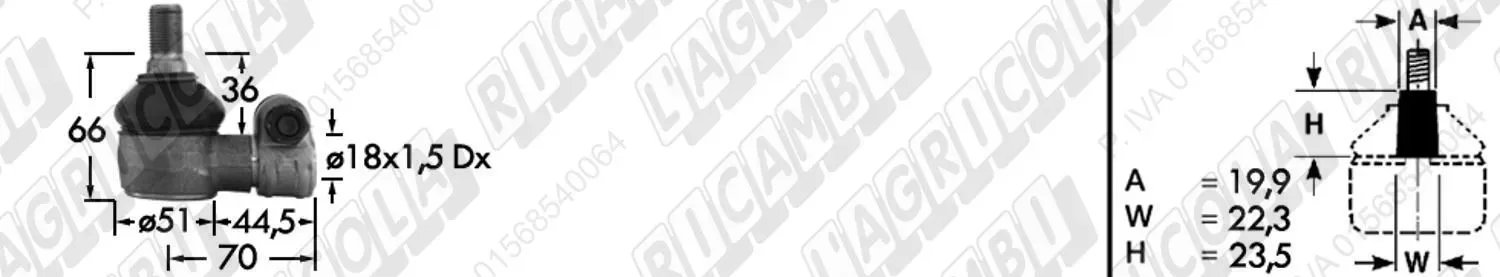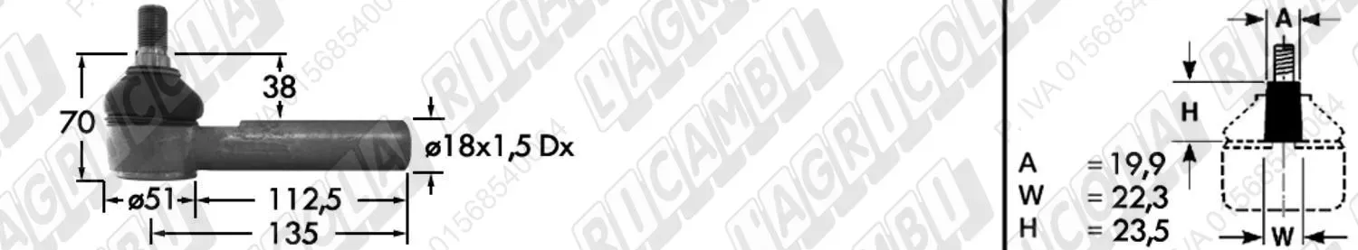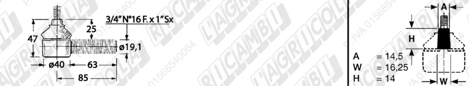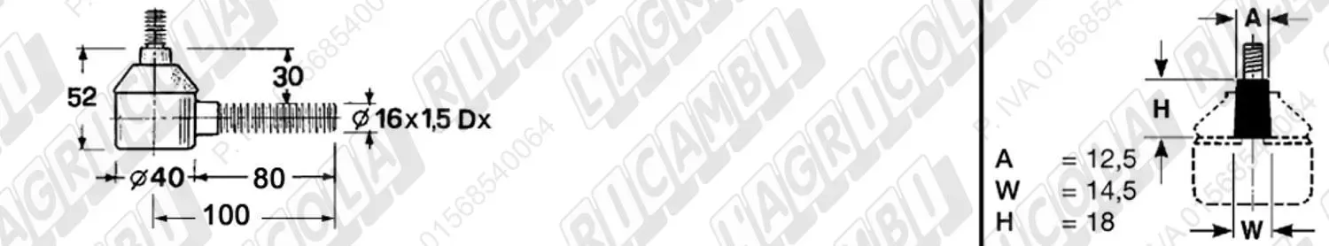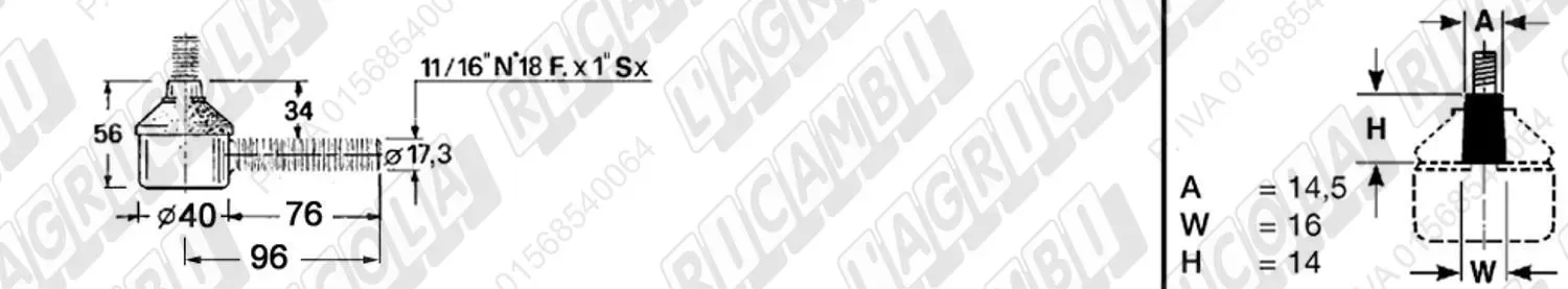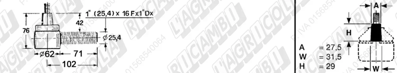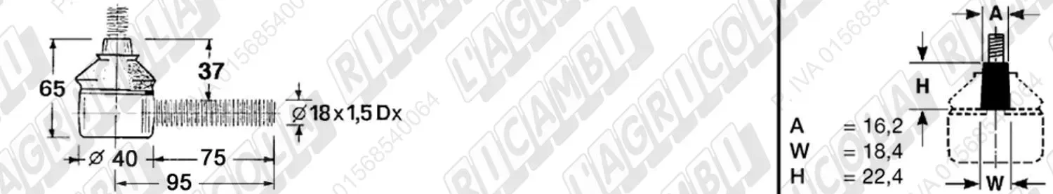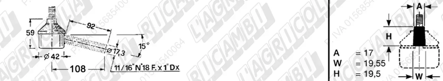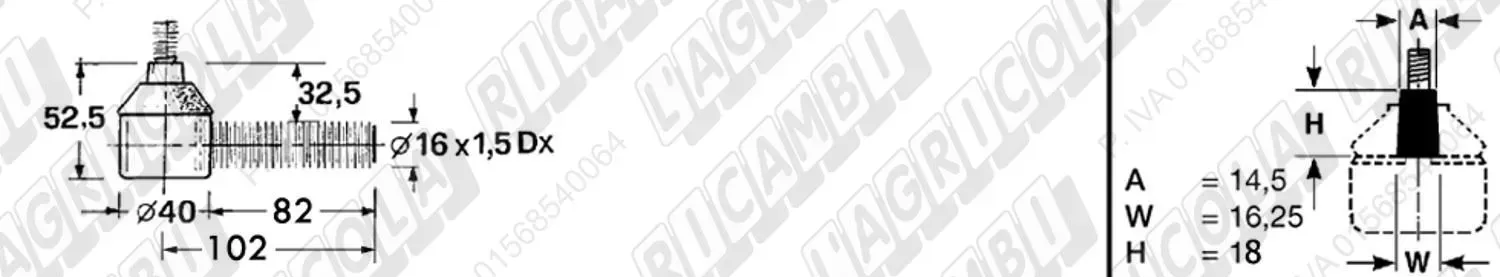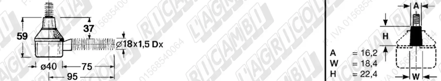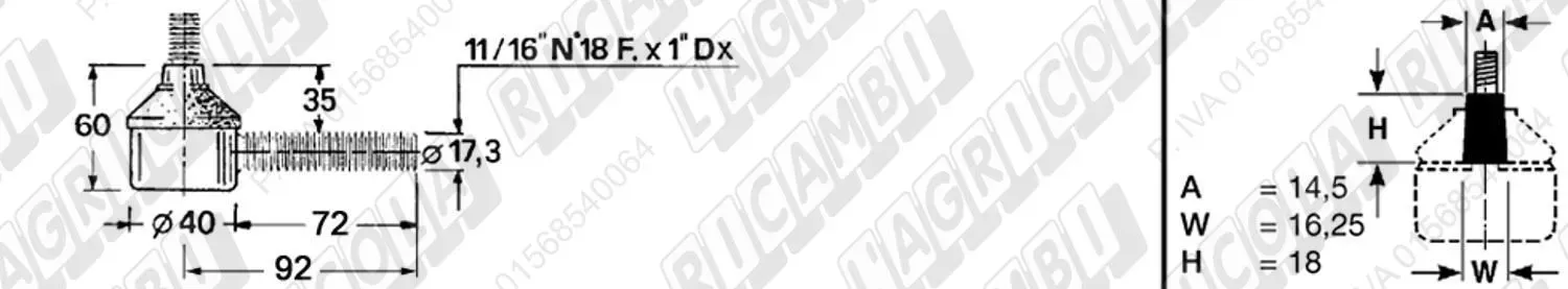 Testina MASCHIO - Cono 16,20 - Fil. 18 x 1,5 Sx - L= 95 (dettagli)