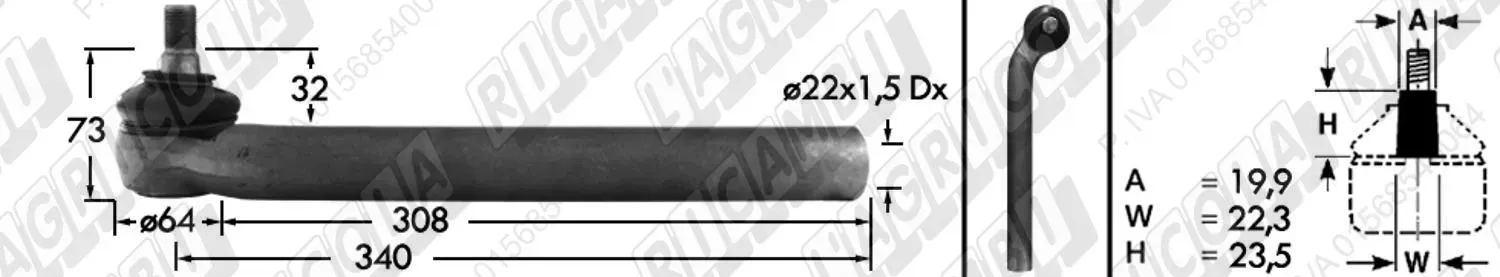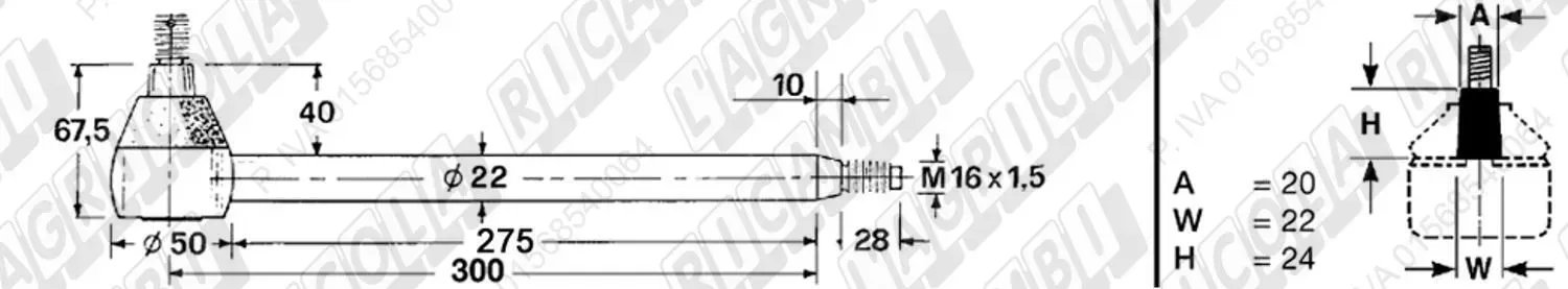 Tirante Idrog. Centr. FEMM. - Cono 23,40 - Fil. ø22x1,5 Dx - L=305 (dettagli)