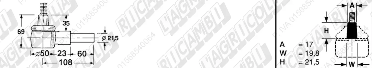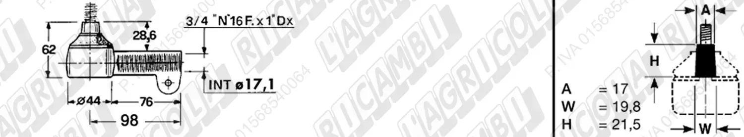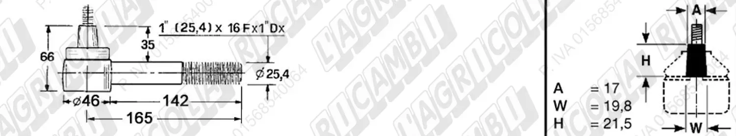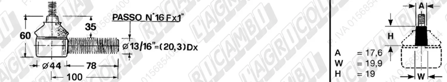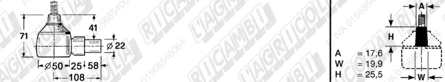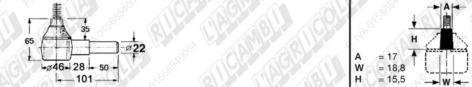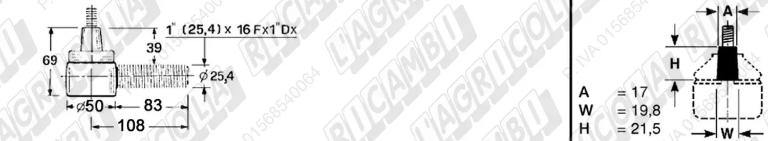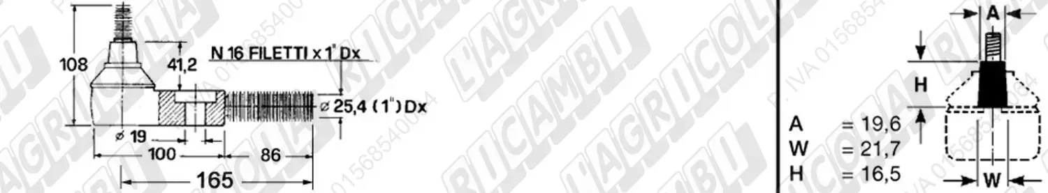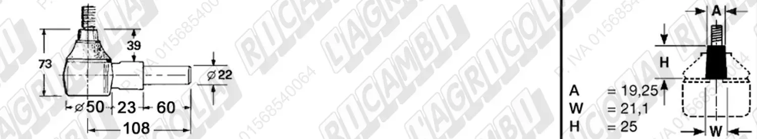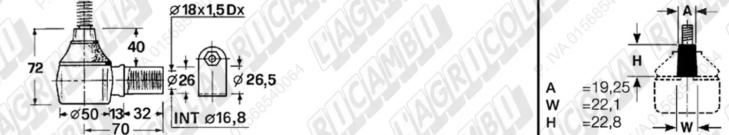 Testina FEMMINA - Att. ø19 - Fil. 22 x 1,5 Dx - L= 72 (dettagli)