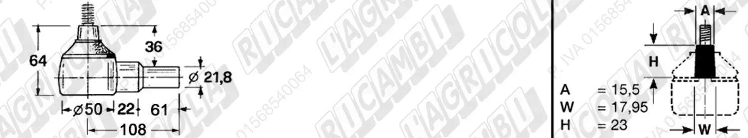 Testina FEMMINA - Cono 14,50 - Fil. 22 x 1,5 Dx - L= 74 (dettagli)