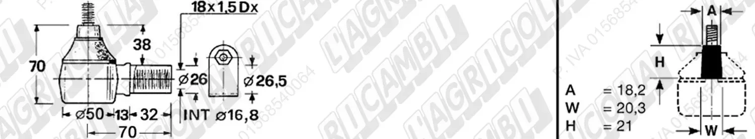 Testina Idrog. FEMMINA - Cono 18,20 - Fil. 18 x 1,5 Dx - L= 70 (dettagli)