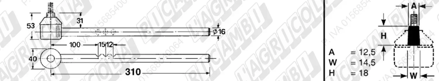 Tirante Registr. MASCHIO - Cono 12,50 - ø16,0 - L=310 (Sopra) (dettagli)